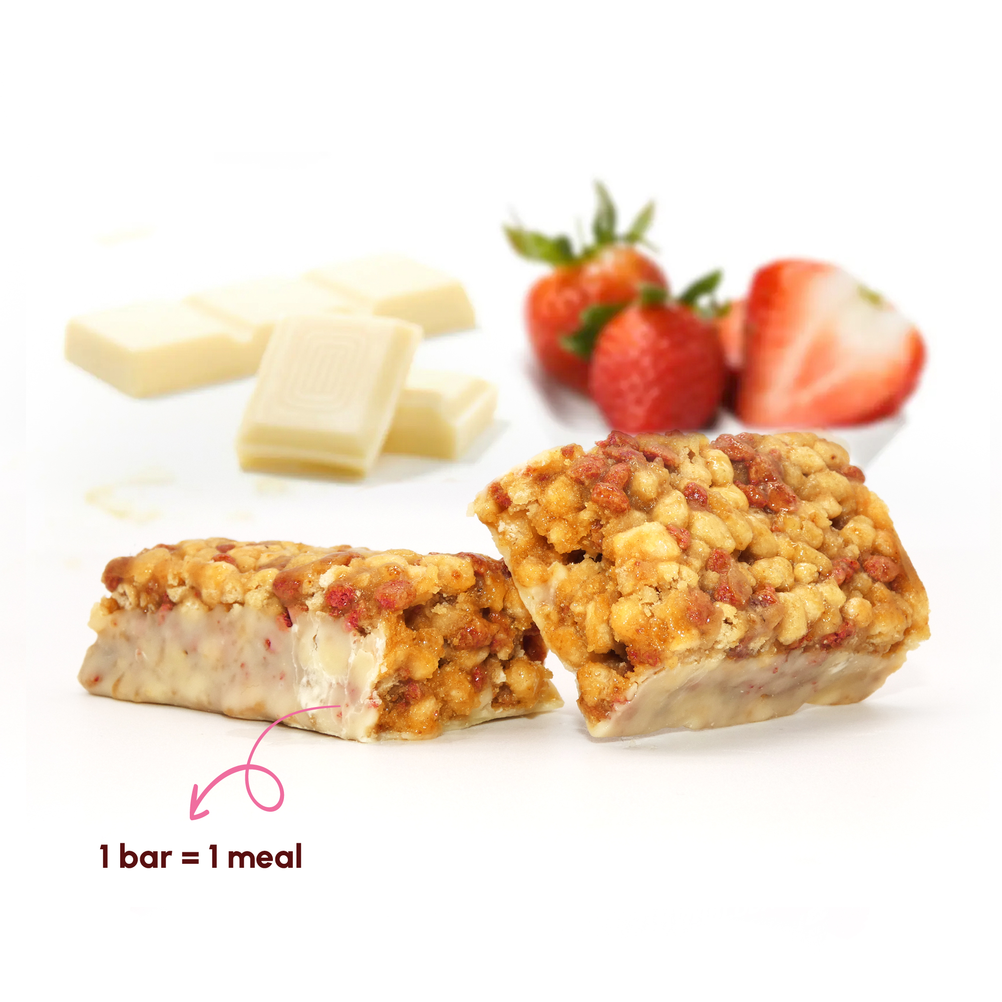 Our Crispy Strawberry Meal Bar is designed as a full meal replacement on any of our diet plans. You might be concerned that as a meal replacement it won’t fill you up, but don’t worry! It’s a larger size bar so is much more substantial than your average cereal or snack bar – it’s a little higher in calories, too, but that just helps to keep those cravings at bay between meals.