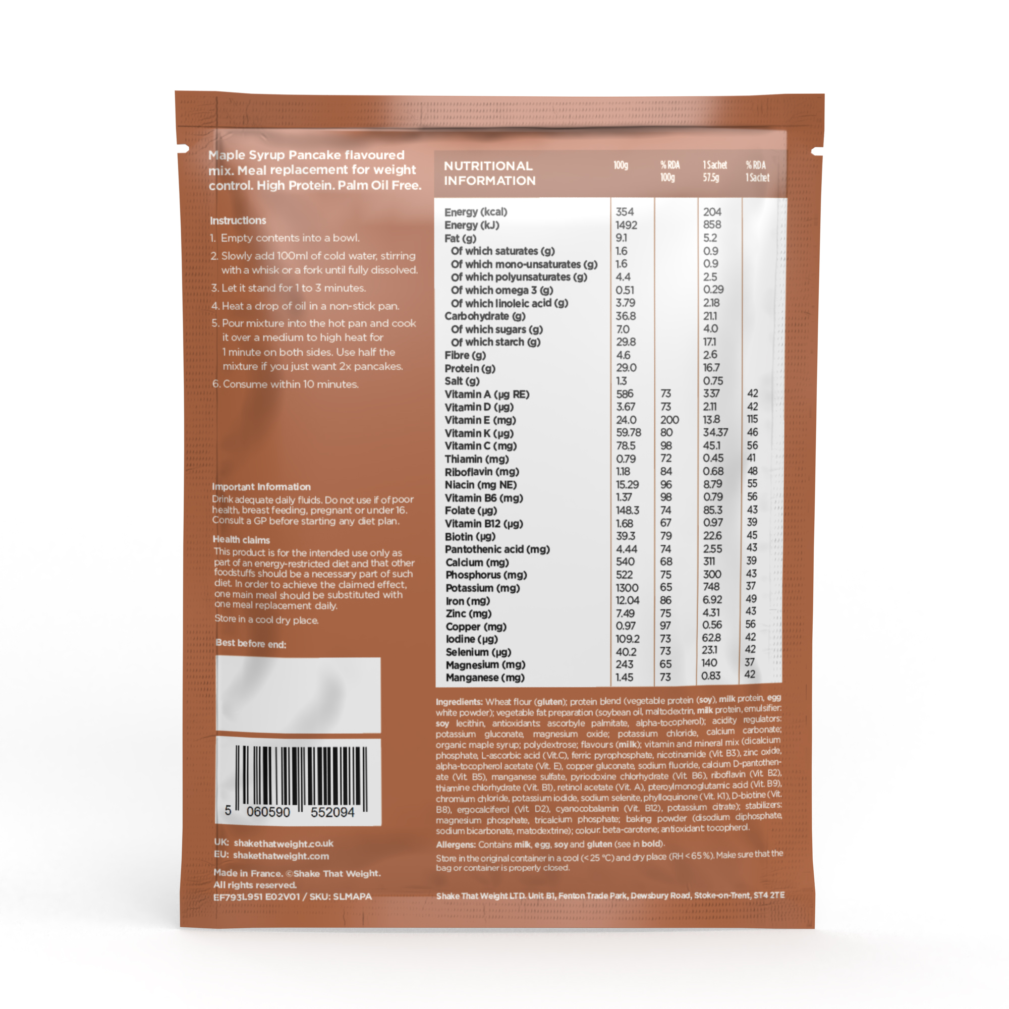 Maple Syrup Pancake Meal Replacement. Perfect for a busy morning or a delightful treat any time of the day, this meal replacement is designed for those who value both flavour and nutrition. Here’s why you’ll love it: