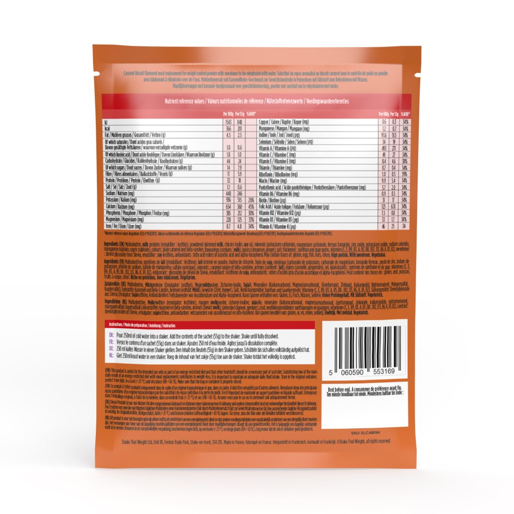 Introducing our new Caramel Biscuit ‘mix with water’ Meal Replacement Shake! This shake is high in protein, making it a satisfying choice for those following a low-calorie diet.