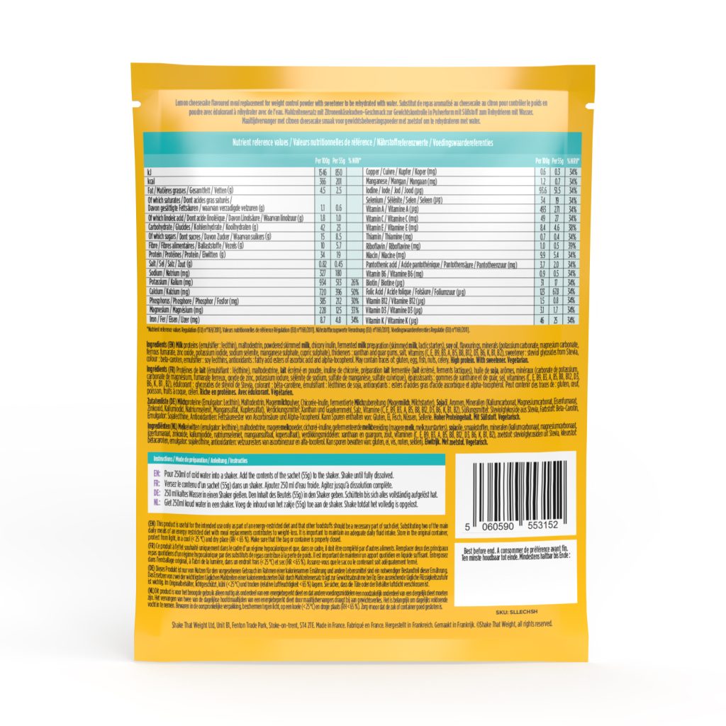 Introducing our new Lemon Cheesecake ‘mix with water’ Meal Replacement Shake! Experience the delightful combination of zesty lemons and creamy cheesecake flavour, all while keeping your calorie intake in check.