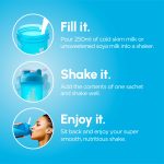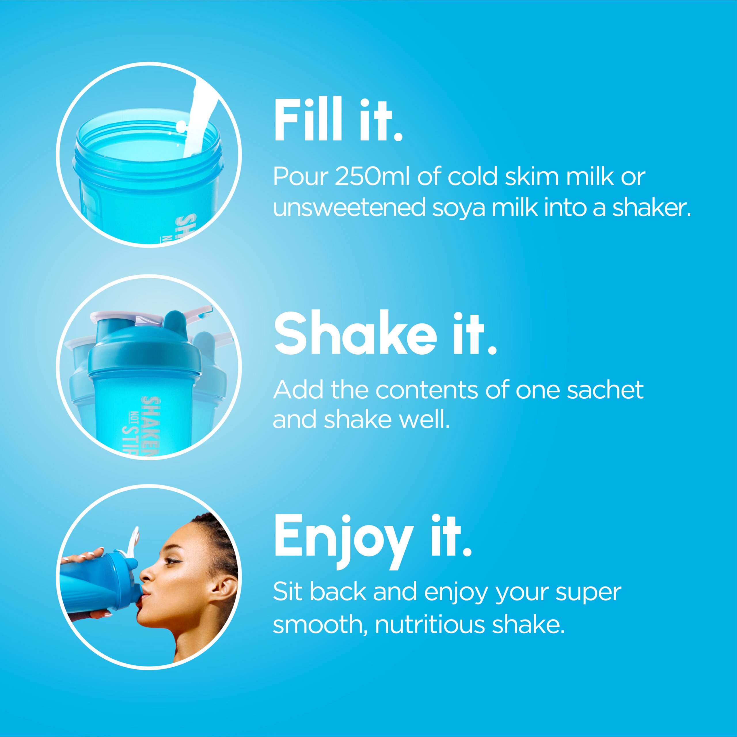 107 in stock1. Pour 250ml skimmed or unsweetened soya milk into a shaker.