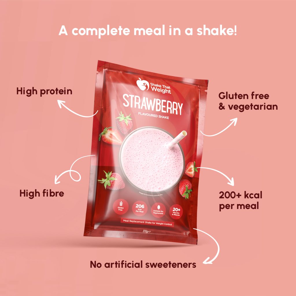 Our delicious and creamy Strawberry Shakes are a great choice as a meal replacement if you’re on one of our diet plans. Our shakes are best when mixed with skimmed milk or unsweetened soya milk – If you wish, you can mix them with water for a fortified meal of 125 calories.
