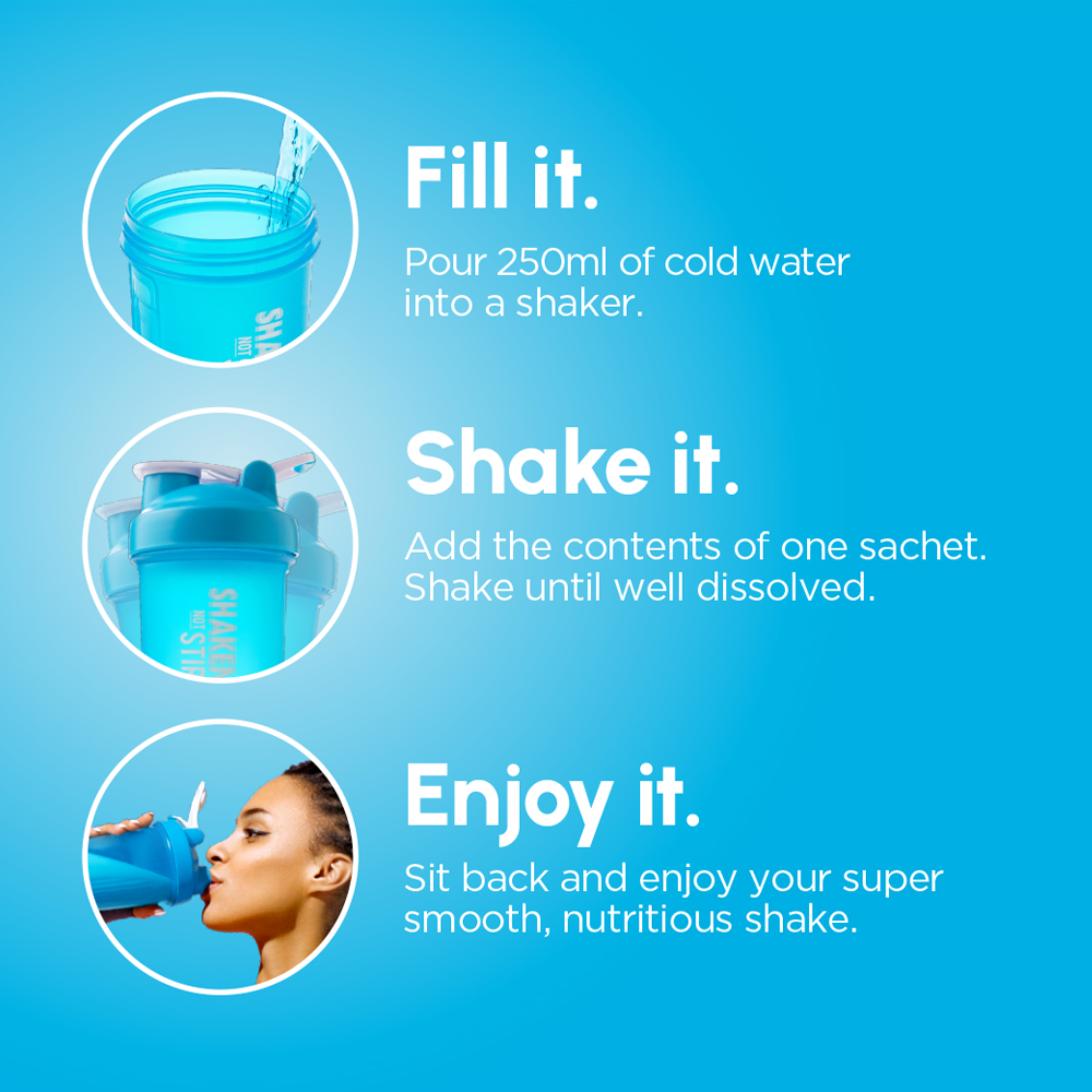 2. Add the contents of the sachet to the shaker.